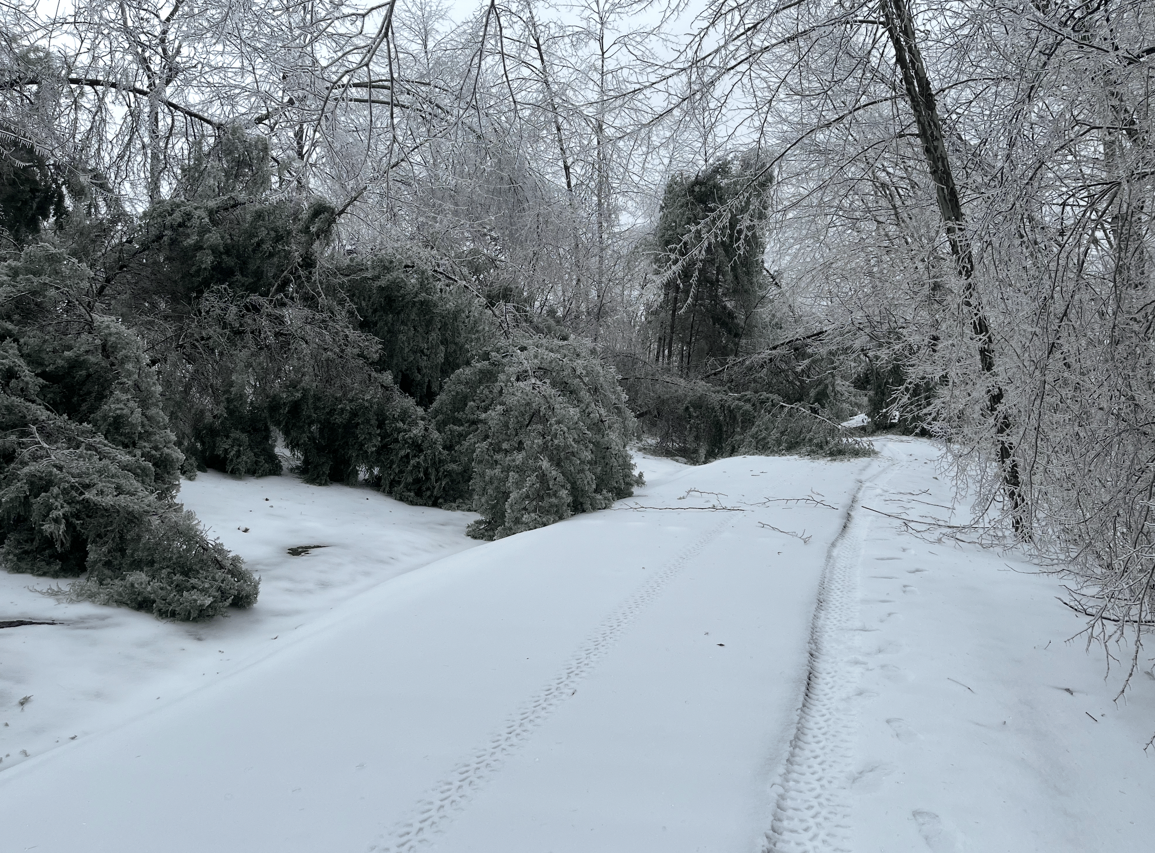 Our driveway and lots of trees ... 🙁 Reading Time: 53 seconds This weekend didn't go anything like I'd envisioned it. I'd had visions of a weekend by the fire, with lots of reading and maybe a couple of naps, plus some exciting football games. Well. Other plans were in store, and suffice it to say it didn't go at all as I'd envisioned. ICYMI, a good bit of the U.S. has gotten quite a storm. It started with freezing temps, progressed into lots of snow which became freezing rain ... and ice....